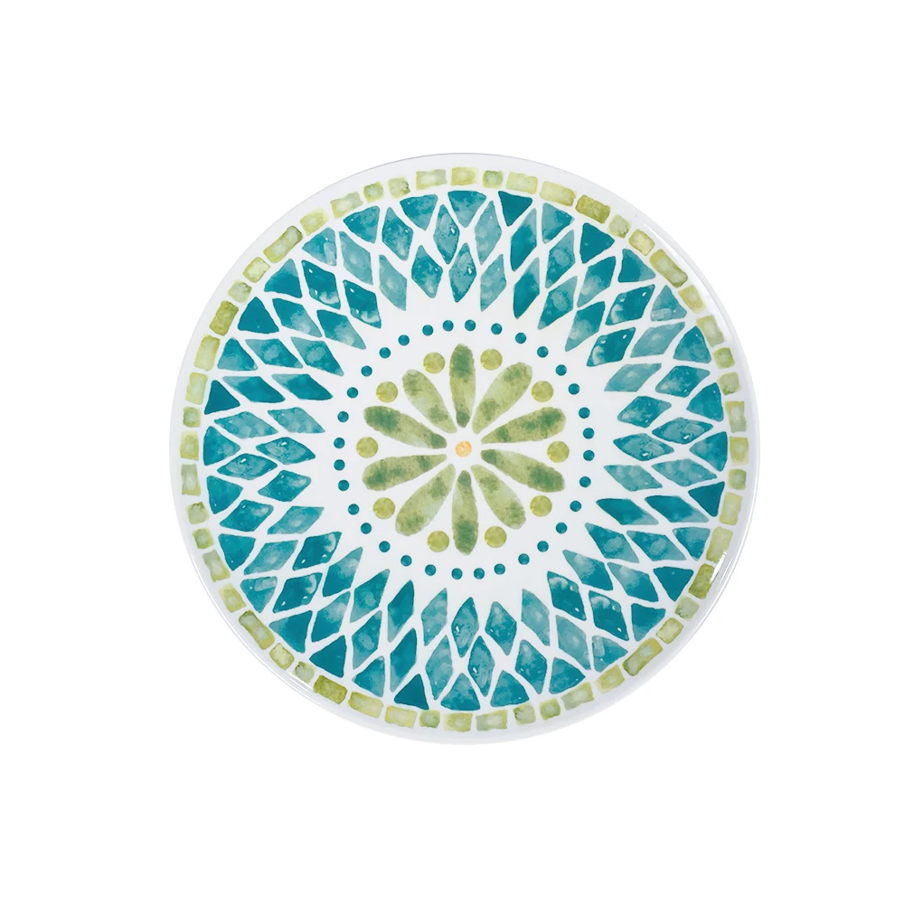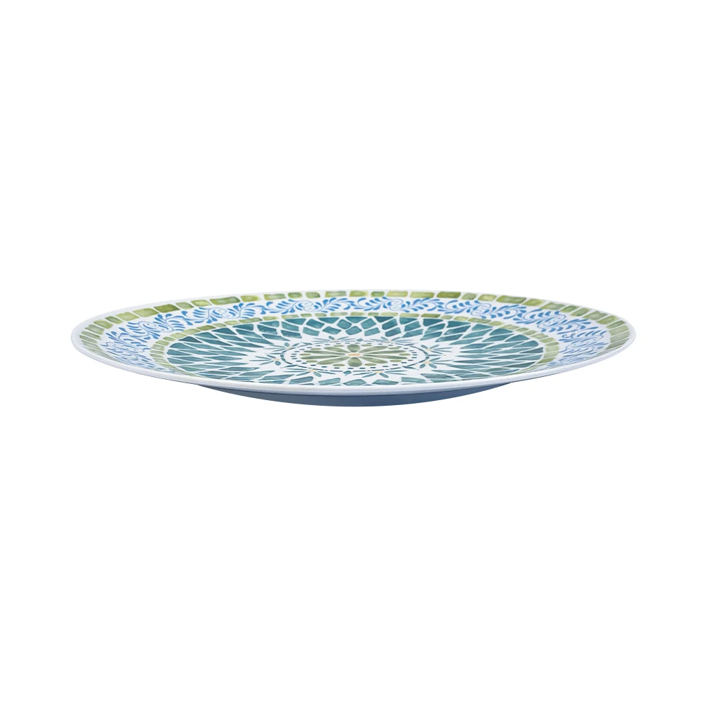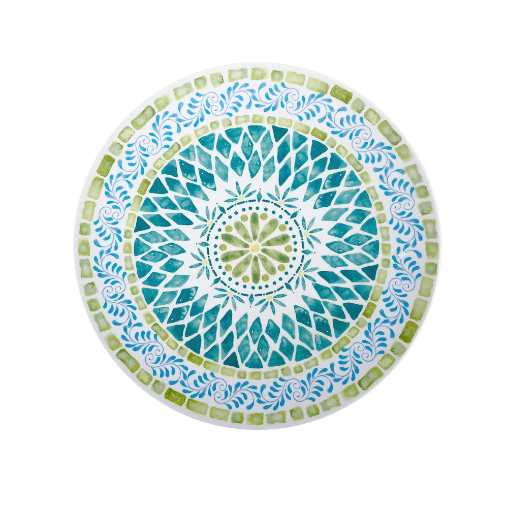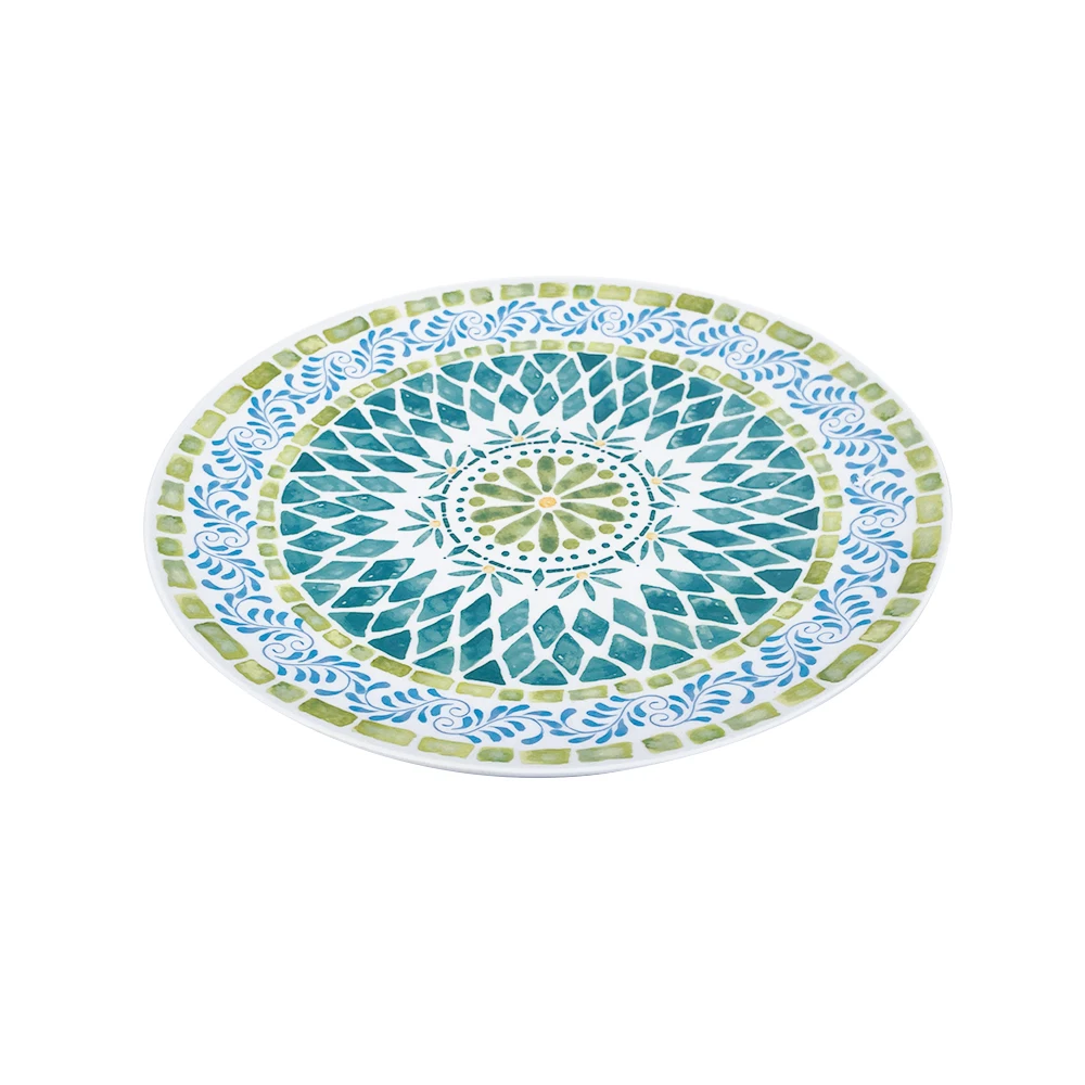 Bestwares Wholesale High Quality Boho Green Mosaic 8/10 Inch Melamine Dinner Plates Dishwasher Safe for Wedding Hotel Home