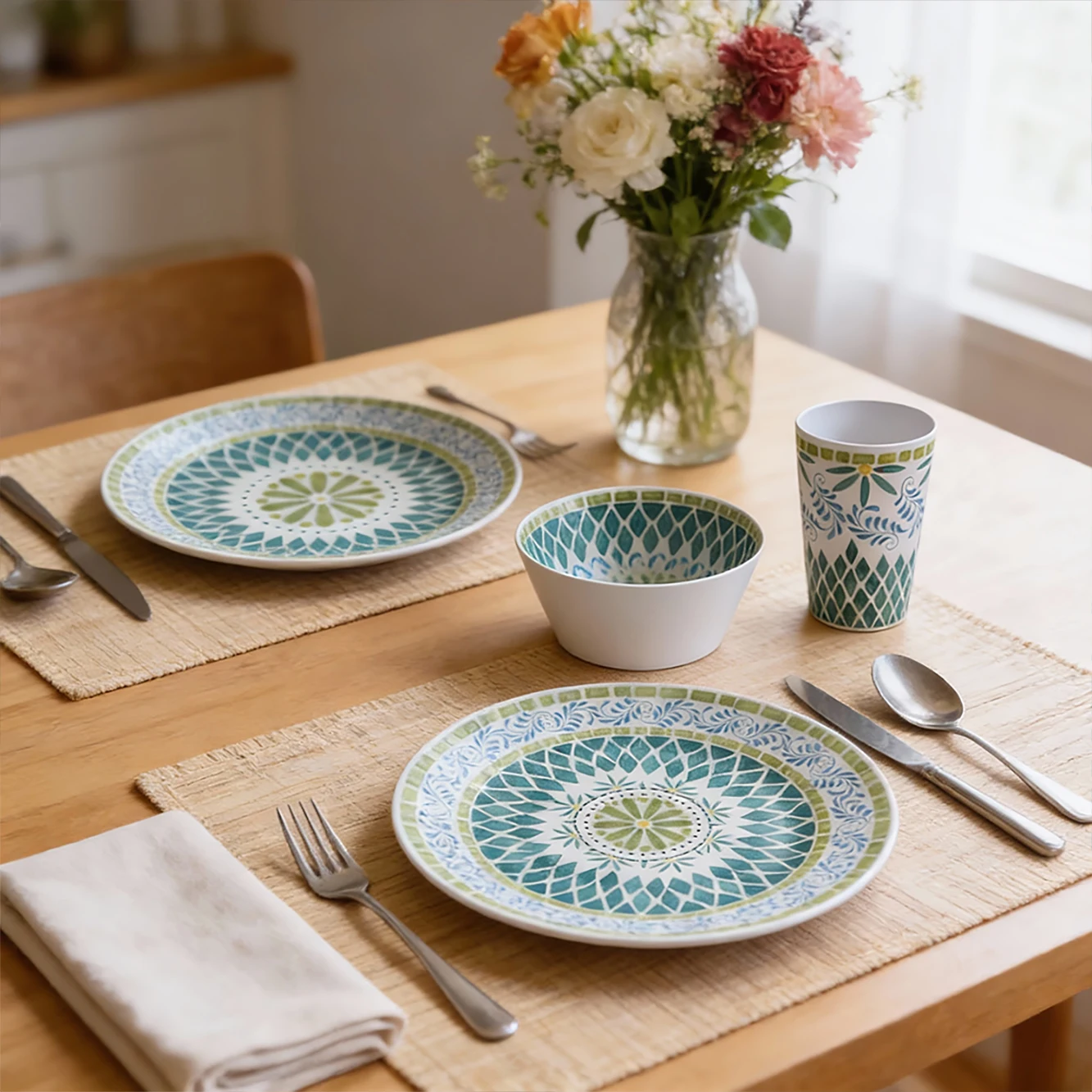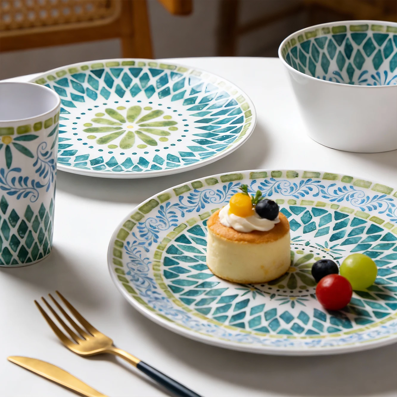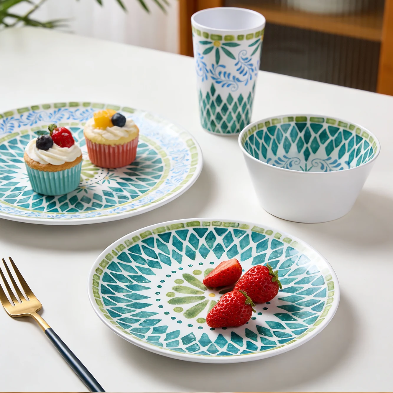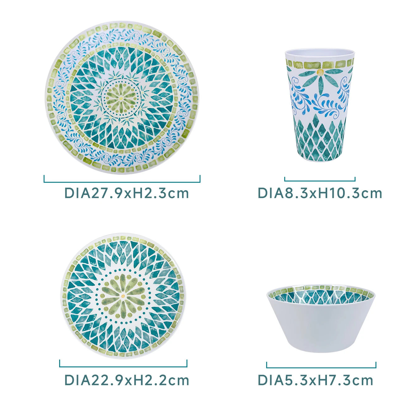 Bestwares Wholesale High Quality Boho Green Mosaic 8/10 Inch Melamine Dinner Plates Dishwasher Safe for Wedding Hotel Home