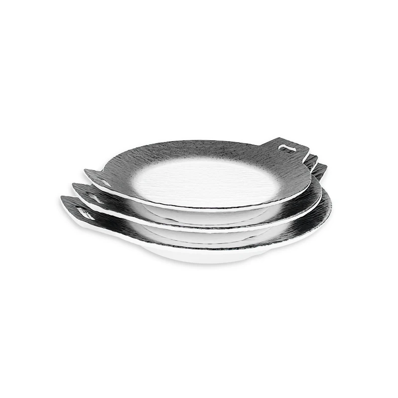Bestwares Wholesale High Quality Gradient Black White Textured Melamine Plate Set with Handles for Sushi